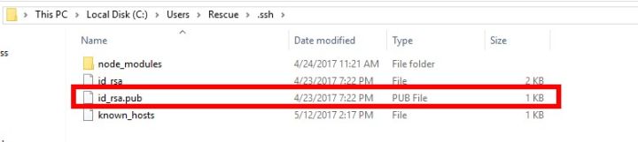 然后找到生成的.ssh的文件夹中的id_rsa.pub密钥,将内容全部复制