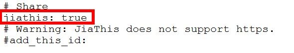 博文分享的插件jiathis,值设置为true。在配置文件中有很多的个性化设置,可以自尝试更多的修改。