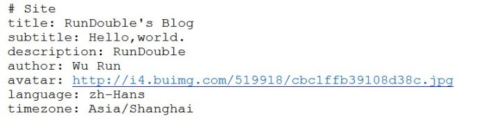 依次是网站标题、副标题、网站描述、作者、网站头像外部链接、网站语言、时区等。