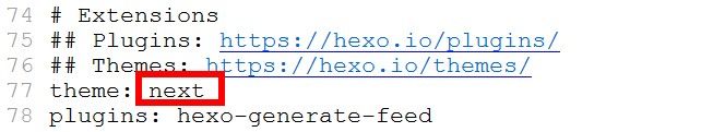 这是将Next主题下载到blog目录的themes主题下的next文件夹中。打开 站点 的_config.yml配置文件,修改主题为next